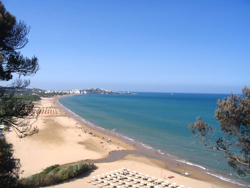GPS-koordinater: Længdegrad 16° 10'' 24,73'' øst Breddegrad 41° 51'' 32,98'' Nord Camping Adriatico er en hyggelig, familiedrevet ferieby. Den ligger kun 2 km fra Vieste på den maleriske kystvej mellem Vieste og Mattinatavillette. Den har et areal på 10.000 kvadratmeter og ligger helt i skyggen af fyrretræer, eukalyptus, grædepil, oleander og andre planter, der er typiske for Gargano-området. Den ligger direkte ved kysten og har en lang strand med fint, rent sand, som aldrig er overfyldt. Meget komfortable murede lejligheder (komplet med bestik og service) designet til at rumme 2 til 6 personer Store pladser til telte, campingvogne og autocampere. Snackbar, pizzeria, bar, marked 50 m fra campingpladsen. Praktiske sanitære faciliteter med varme brusere, der altid er tilgængelige, møntvaskemaskine. Legeplads, internet-hotspot, beachvolley, windsurfingskole, gratis opbevaring af sejl og surfbrætter. Overvågning om natten. Der arrangeres afgange fra Camping Adriatico-stranden for at besøge havgrotterne ved Vieste. Besøg på Tremiti-øerne og langs kysten. Kystvejen, der løber fra vores centrum til Mattinata i 40 km, er rig på strande og smukke bugter. CampingpladsenCamping Adriatico ligger kun 20 km fra den smukke Foresta Umbra, det grønne hjerte i Gargano Nationalpark. Vores skov giver mulighed for, selv i de travleste perioder, at finde en oase af ro og forfriskning samt maleriske stier til vandring eller mountainbiking.