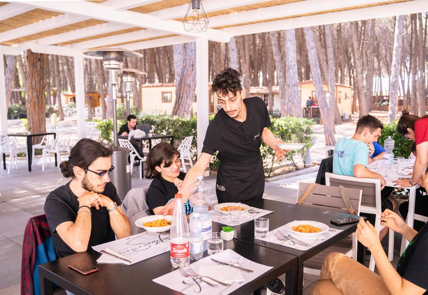 Mare Pineta skiller sig ud for fuldstændigheden af de tilbudte tjenester. Inde i landsbyen er der et velassorteret marked til ethvert behov, en indbydende bar og et karakteristisk restaurant-pizzeria med en brændefyret ovn. Strukturen er udstyret med to serviceområder med varme brusere, håndvaske og vaskemaskine, samt bekvemme stationer til opvask. Juvelen i kronen på campingpladsen er; den store private strand med faciliteter, præget af fint sand og let skrånende havbund, ideel til badning for de mindste lille. Der lægges særlig vægt på har været dedikeret til tilgængelighed, med handicapvenlige toiletfaciliteter strategisk fordelt over hele campingpladsen.