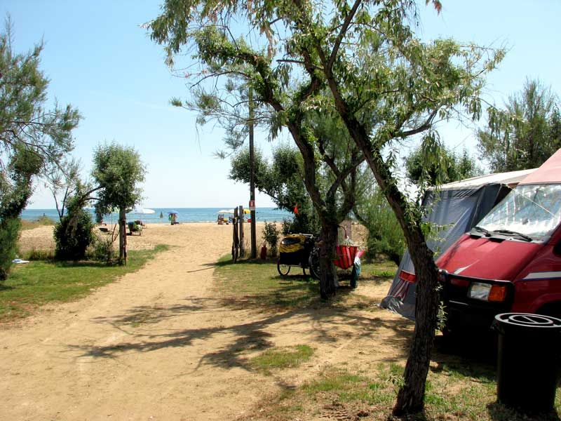 GPS-koordinater: Længdegrad 16° 10'' 24,73'' øst Breddegrad 41° 51'' 32,98'' Nord Camping Adriatico er en hyggelig, familiedrevet ferieby. Den ligger kun 2 km fra Vieste på den maleriske kystvej mellem Vieste og Mattinatavillette. Den har et areal på 10.000 kvadratmeter og ligger helt i skyggen af fyrretræer, eukalyptus, grædepil, oleander og andre planter, der er typiske for Gargano-området. Den ligger direkte ved kysten og har en lang strand med fint, rent sand, som aldrig er overfyldt. Meget komfortable murede lejligheder (komplet med bestik og service) designet til at rumme 2 til 6 personer Store pladser til telte, campingvogne og autocampere. Snackbar, pizzeria, bar, marked 50 m fra campingpladsen. Praktiske sanitære faciliteter med varme brusere, der altid er tilgængelige, møntvaskemaskine. Legeplads, internet-hotspot, beachvolley, windsurfingskole, gratis opbevaring af sejl og surfbrætter. Overvågning om natten. Der arrangeres afgange fra Camping Adriatico-stranden for at besøge havgrotterne ved Vieste. Besøg på Tremiti-øerne og langs kysten. Kystvejen, der løber fra vores centrum til Mattinata i 40 km, er rig på strande og smukke bugter. CampingpladsenCamping Adriatico ligger kun 20 km fra den smukke Foresta Umbra, det grønne hjerte i Gargano Nationalpark. Vores skov giver mulighed for, selv i de travleste perioder, at finde en oase af ro og forfriskning samt maleriske stier til vandring eller mountainbiking.