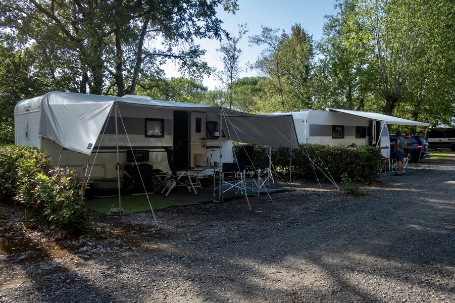 For dem, der foretrækker et mere i det fri byder campingpladsen på forskellige typer pladser, der alle ligger i et skyggefuldt og veludstyret område. Pladserne er designet til at rumme telte, campingvogne og campister. Hver plads tilbyder en elektrisk tilslutning (6 ampere) og mulighed parkering i nærheden. Vandpunkter er fordelt over hele området for at lette adgangen for dem, der opholder sig på pladserne.