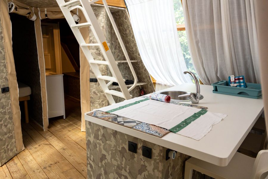 Blandt tjenesterne på campingpladsen: standpladser, bungalows, lejligheder, swimmingpool, babyklub, legeplads, hydrocykel, bar, minimarked, autocamperservice, Wi-Fi, varmt vand, shuttleservice, gratis cykler og mere...