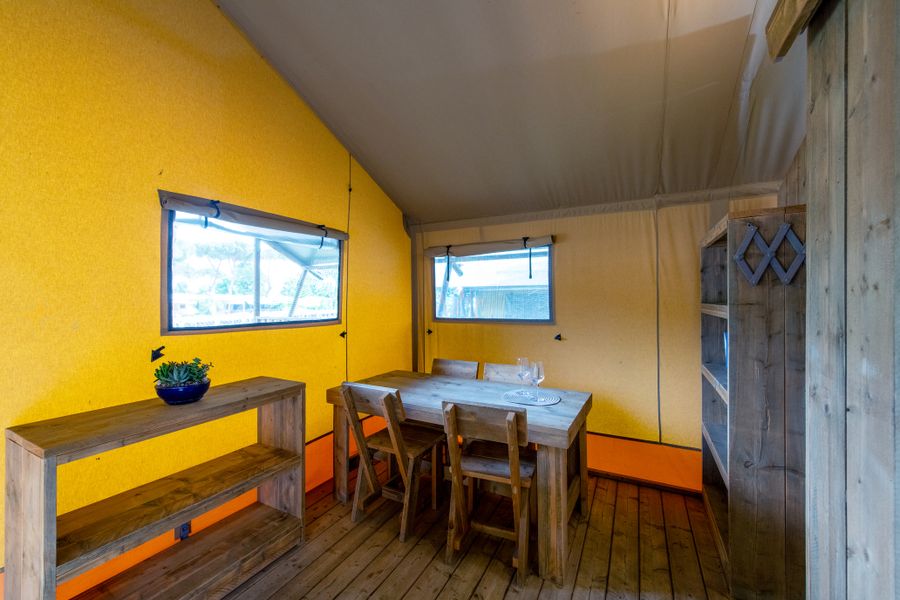 På et areal på 70.000 m² tilbyder pladsen store standpladser med udsigt over søen, mobilhomes, Safari Lodge-telte, Coco-telte, Mini Safari-telte, to swimmingpools for voksne og børn, jacuzzi, en lille marina, stort amfiteater til underholdning, storskærm, international animation, fitness, miniklub, legeplads, tennis, basketball, beachvolley, femmandsfodbold, bordtennis og Dragon Boat-ture. Fri brug af parasoller og liggestole ved søen, camper-service, eventyrpark for børn og unge, fælles grillområder, samt bar, marked, spisested, gratis Wi-Fi (100% dækning), gratis opladning til elcykler og mod betaling til elbiler, og hunde gratis.